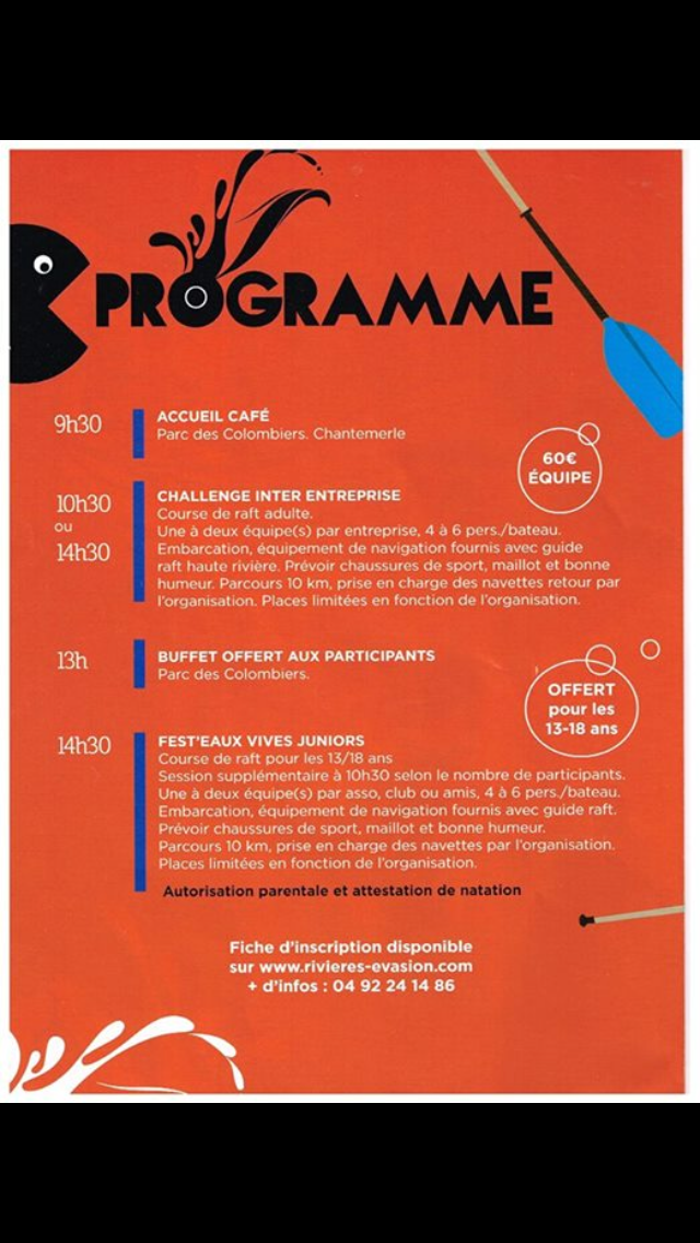 Bonsoir à tous, nous vous proposons une course en rafting le samedi 17 juin sur la guisanne par le biais de l animation festo vives. Ouvert pour les enfants niveau pagaies vertes. Si cela vous intéresse prévenez moi pour les inscriptions. On peut aussi faire un bateau adulte. Tous en prenant en compte que certains parents garde la troupe pendant l épreuve adulte.